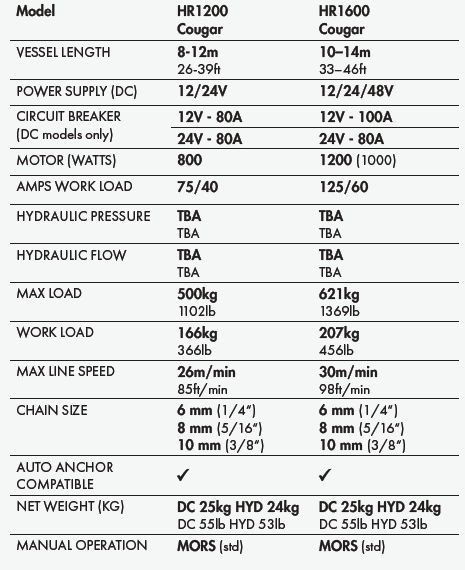 - Muir Cougar HR1600 Compact Horizontal Anchor Winch – 12V 1000W Motor – Suits 8mm SL Chain and 14mm Rope