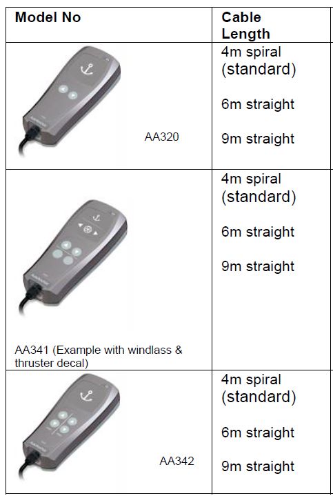Auto Anchor AA341 Hand Held Windlass Control – 4 Button Wired Remote (AA341)