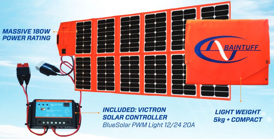 Baintuff 180 Watt Foldable Solar Blanket - Up to 10A@12V - 1930 x 800mm (BTBLANKET180)