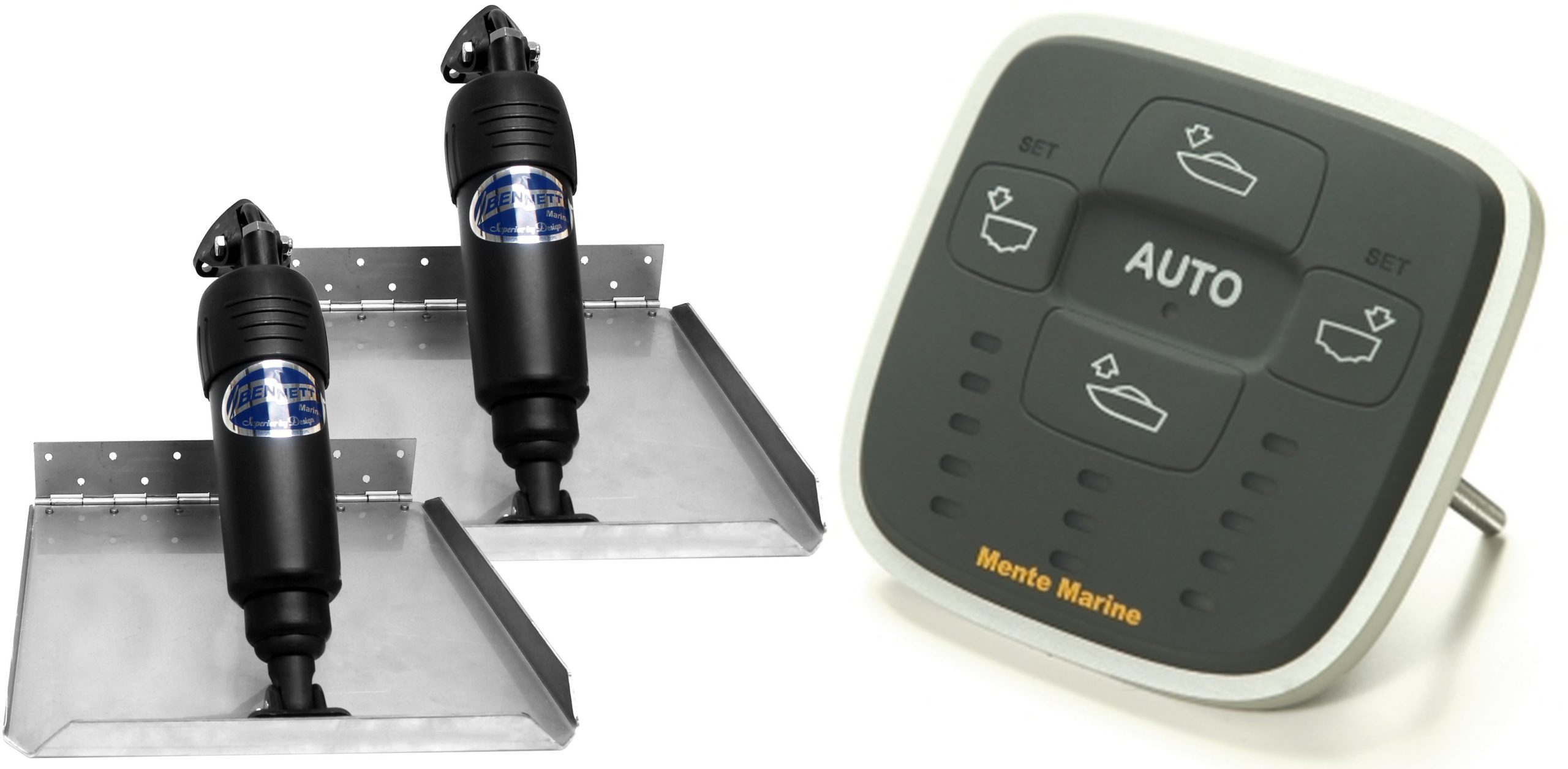 | 499/BOLT1212ED/ACSRP | KIT 12"X12" EDGE MOUNT, ADJUSTABLE UPPER HINGE ACTUATORS + ACSRP (Mente) (Mente Marine LED Indicators, Auto Adaptive to Conditions and Roll-Pitch Control, Auto Trim and Auto Tab Retract) |