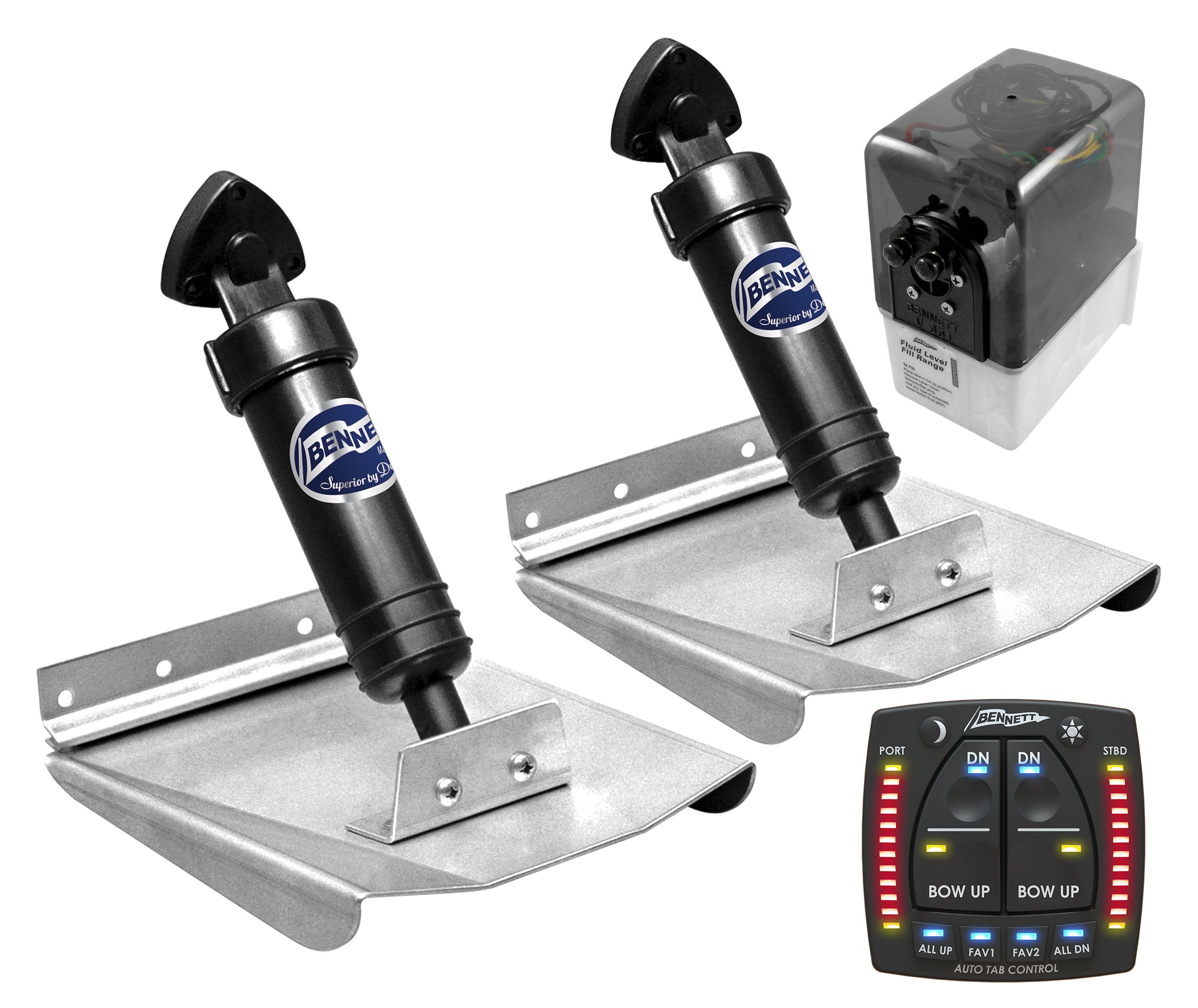 • Bennett Classic Hydraulic Trim Tab Kits - ideal for larger boats that stay in the water, requiring high speed action under extreme marine conditions - 12 Volt or 24 Volt available call us for more information.