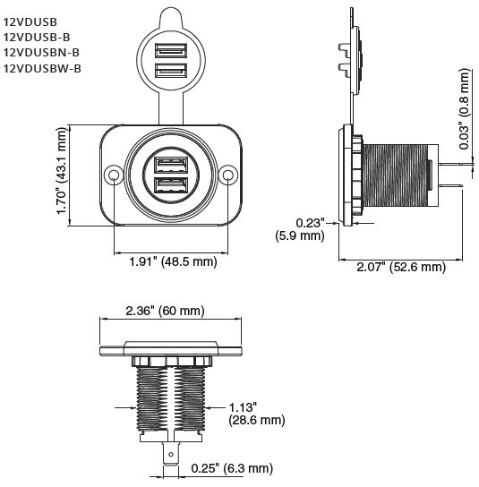 DUAL USB with 5V 2.1A Output Total (SUR 12VDUSB-B)