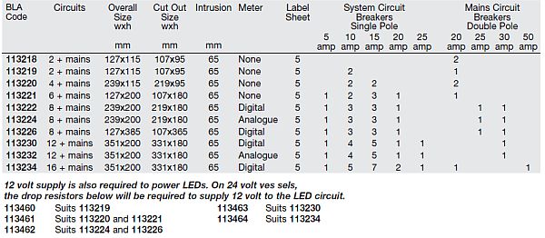 These panels can be supplied with no meter, analog meter or digital metering: analogue meters for either AC volts or amps; digital meters switchable to show AC volts, amps and frequency.