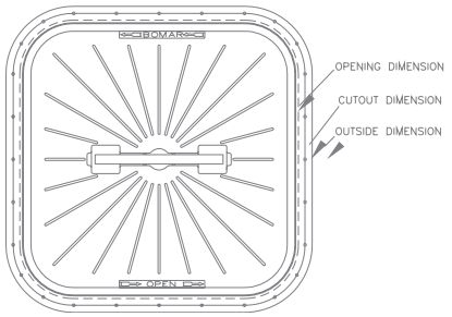 380 x 610mm Opening – 450 x 680mm Cutout – 552 x 775mm Overall
