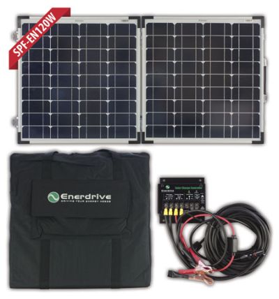 Enerdrive offers a great outdoor solution to keep your battery and 12 volt equipment going and going all year round in the sun. The Enerdrive Portable Power Anywhere Solar kits feature all the goods you require for portable solar power around your caravan, camp site, mooring or any outdoor activity. Available in 100W, 120W and 160W.
