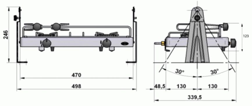 Compact and lightweight, the DUO is designed for use on boats. It features a large rapid burner and a second medium burner.