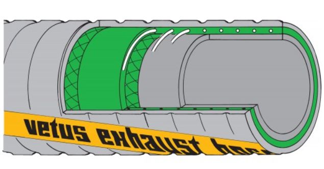 In order to reduce back pressure in the engine, the inside of all VETUS exhaust hoses is completely flush and smooth.