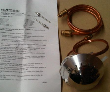 This Force 10 top burner retro-fit kit is designed to replace an entire small top burner with the new SABAF burner (with Stainless Steel burner cap). The retro-fit kits offer a solution for burner caps, thermocouples, and burner housings that are no longer available for stoves older than the 2000 model year and are far less expensive than replacing the individual burner parts. They will work with most Force 10's manufactured between 1985 and 2000. For stoves newer than 2000 all individual parts are still available.