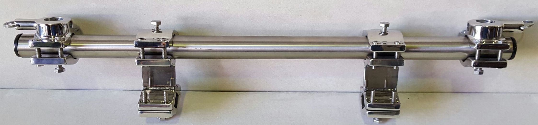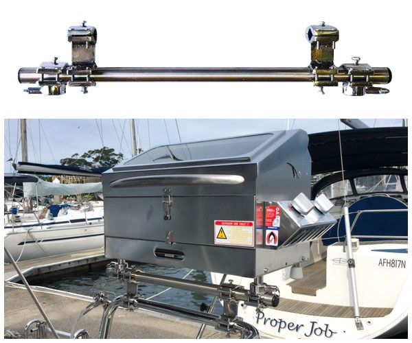 Stern rail too short to fit your barbecue? Use our new spacer bar which fits directly to your stern rail with a longer and fully adjustable rail to place your rail mounts. Fits in minutes and saves you hundreds of dollars in on-site fabrication.(includes  brackets, s/s bar and rail mounts)