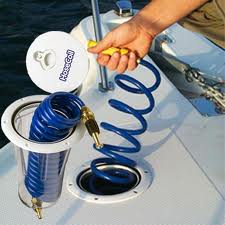 A range of Deckwash hose systems from HoseCoil USA making installation more practical and use more functional. The self coiling 10mm hoses are constructed from strong and highly flexible blue polyurethane. All enclosure kits come with either a hose nozzle or a trigger spray gun for effective anchor and deck washdown and are made from UV stabilised materials.