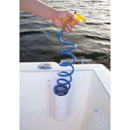 A range of Deckwash hose systems from HoseCoil USA making installation more practical and use more functional. The self coiling 10mm hoses are constructed from strong and highly flexible blue polyurethane. All enclosure kits come with either a hose nozzle or a trigger spray gun for effective anchor and deck washdown and are made from UV stabilised materials.