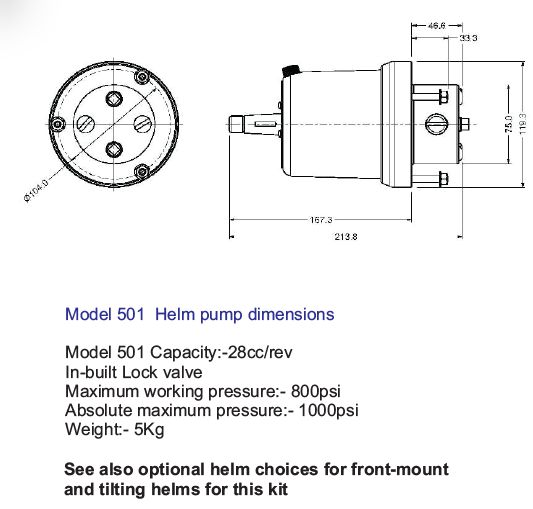 Commander Kits – Utilise an aluminium cylinder design, with unique electrolytic insulation between metals for maximum corrosion resistance. Commander kits use the 501 Helm Pump Unit.