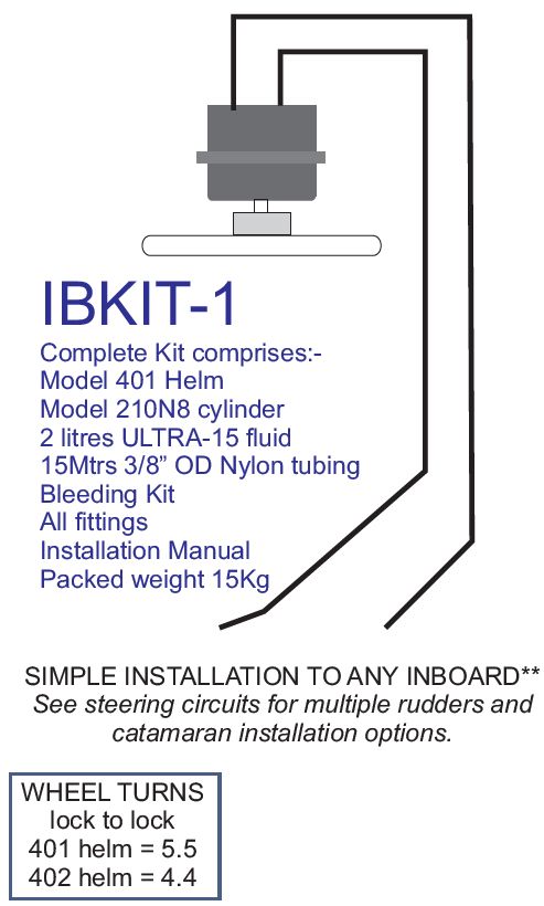 IBKIT1 inboard kit offers a powerful and economical alternative to traditional cable or mechanical steering systems. Various cylinder sizes can be used with the Admiral 401 Helm to provide the best combinations of torque for your boat.