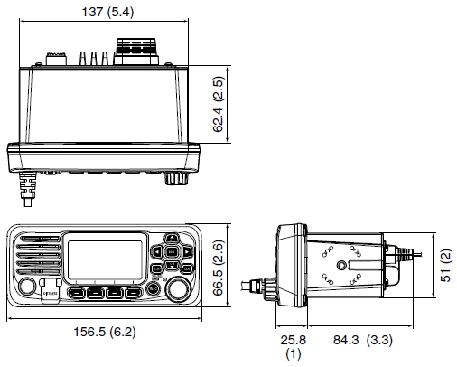 The IC-M330 (black or white colour options available) with its ultra-compact body (156.5 (w) x 66.5 (H) x 110.1 (D) mm) is the ideal Marine transceiver where size is at a premium in the vessel.