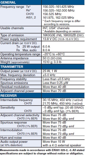 - NMEA 2000™, NMEA 0183/-HS Connectivity – Using NMEA 2000™ connectivity, the radio can exchange GNSS, AIS reports, DSC call information data, radio frequency and PGN list data on the network. NMEA 0183/-HS GNSS position data can also be converted to NMEA 2000™ data for other equipment.