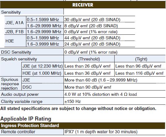 • Built-in DSC Watch-Keeping Receiver – The dedicated DSC watch-keeping receiver continuously scans the six distress channels in rotation. A total of 100 MMSI numbers (75 Individual and 25 Group) for DSC calls can be stored with a 10-character ID name.