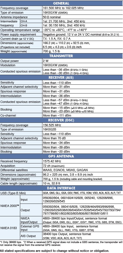 - USB Connectivity – AIS data can be output from an USB cable connector onthe rear panel*. * A third party application and a connection cable are required.