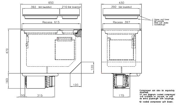 The Isotherm build-in freezer is an ideal choice where a top loading unit is required, ready to be installed complete with freezer cabinet. The Isotherm 53 Litre Top Load built-in box features a stainless steel inner liner and the capability of operation at up to 30º angle of heel. It offers a temperature range of 0 °C to -20 °C. The Danfoss air cooled compressor unit is connected to the base of the ice chest and is supplied with 1.5m of flexible tubing for remote mounting if required. The Isotherm 53 Litre Top Load built-in box benefits from a stainless steel interior providing excellent heat and corrosion resistance, while its plastic bottom makes it much easier to keep clean. The freezer element has been integrated into the wall of the freezer and covered by an extra thick foam insulation, enabling consumables to be kept at the lowest possible temperatures