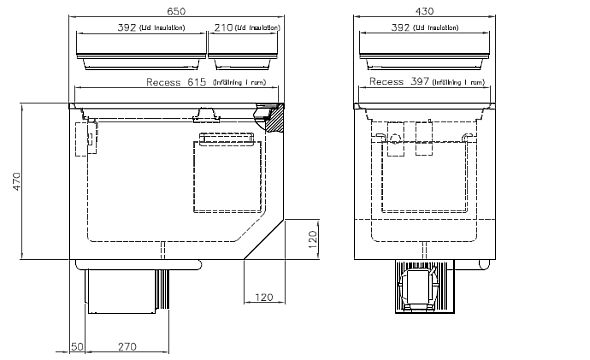 The BI 75 is a built-in fridge box with stainless steel inner lining, plastic bottom section and two wire baskets. It is equipped with interior light. Its fan-cooled compressor unit is mounted below but easily re-positioned up to 1.5 meter away The Isotherm BI75 75 litre build-in fridge is an ideal choice where a top loading unit is required, ready to be installed complete with refrigeration cabinet. This unit is purpose built for marine use, and features a stainless steel inner liner and the capability of operation at up to 30º angle of heel. The Danfoss air cooled compressor unit is connected to the base of the ice chest and is supplied with 1.5m of flexible tubing for remote mounting if required.