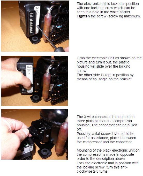 Electronics Failure: If after following the above steps and the compressor does not run, this would indicate the electronics box has failed. Replacement of the electronics module is easy.