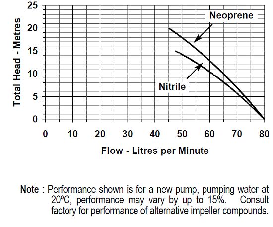 - Supplied with nitrile impeller. Neoprene impeller optional.