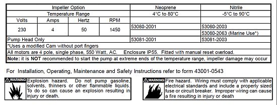 J40-144 230 volt AC mains power utility pump Jabsco 53080-2063