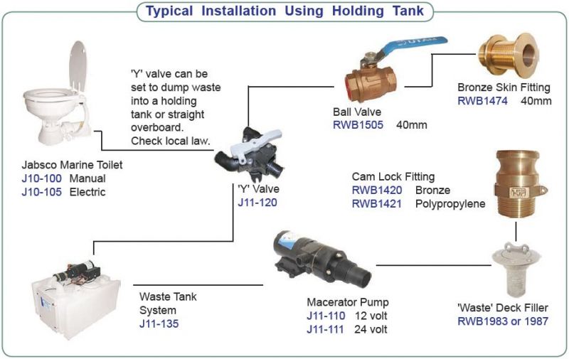 Salt Water Flush Models - Includes a silent running, remote mounted, self-priming Jabsco electric diaphragm pump to bring in ocean salt water to rinse the bowl. Includes a pump-guard strainer and touch pad control.