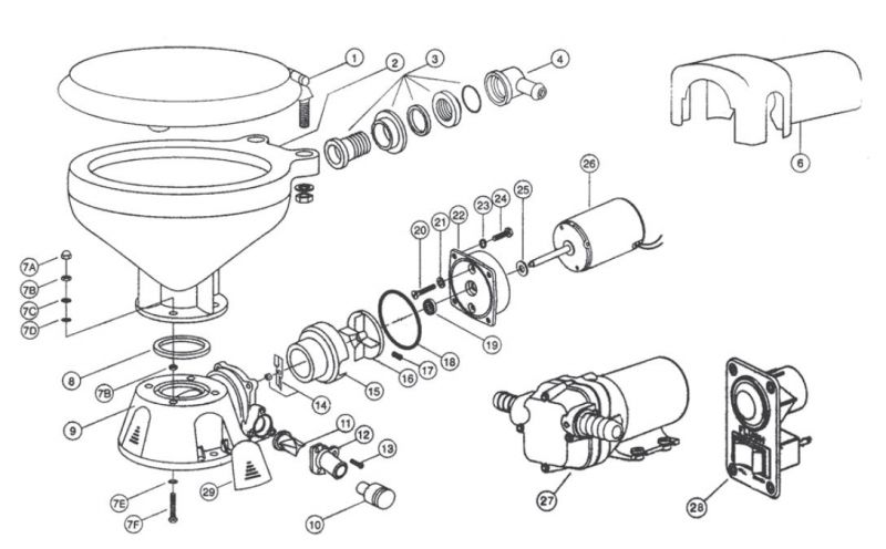 The QUIET FLUSH system basically works the same way and includes the same features as standard electric Jabsco toilets, with some important additional features.