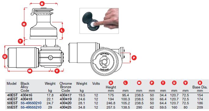 Lewmar 45EST EVO Self Tailing Electric Sheet Winch - 12V - Black Alloy (430418)