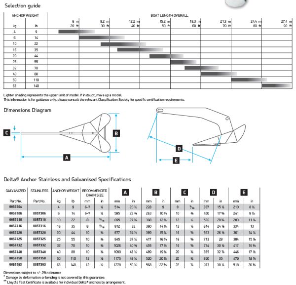 All Delta anchors are "guaranteed for life against breakage". Lloyd's Test Certification is available for individual Delta anchors by arrangement.