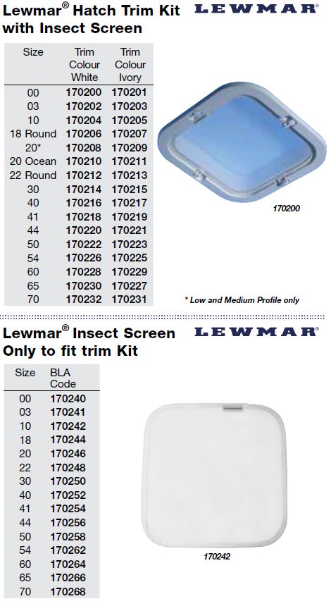 Lewmar Hatch Accessories - Hatch Trim Kit with Insect Screen