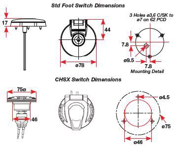 A range of foot switches providing direct control for all Lewmar® 12 or 24 volt DC electric windlasses. Each switch features a solid hinged cover for protection and to guard against accidental foot operation with optional centre hole open models which allow for finger operation when required. Suitable for 5A open contact 12 or 24 volt, must be used with solenoid or control box.