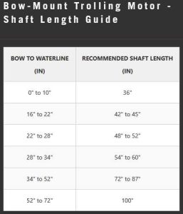 - Shaft Length – Choosing the proper shaft length is important; if its too short, the prop wont be sufficienbtly submerged. WEe recommend submerging the centre of the motor section by at least 300mm. Use the chart below to determine your shaft length.