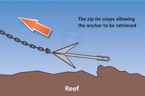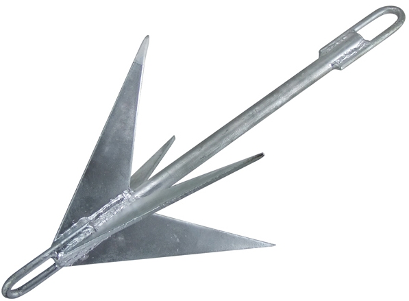 Galvanised heavy duty rigid pronged anchor, The Mooloolaba pick is a versatile anchor designed for use on reef and rocky sea beds. Easy retrieval with fixing eyes at both ends.