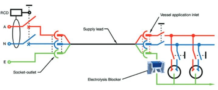 The location of the 67amp Electrolysis Blocker (galvanic isolator) indicated by Australian Marine Electrical Standard for Marinas and Pleasure Craft 3004/2002 is a must. The electrolysis blocker maybe installed in either power supply by the marina or on the vessel. For maximum protection every vessel must be isolated.