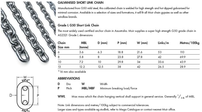 POA - MUIR Anchor Chain 6mm Galvanised G50 Grade 'L' - AS2321 (F811135)