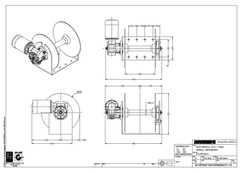 Muir DFF10 Free Fall Drum Anchor Winch – Incl Circuit Breaker, Solenoid, Up/Down Switch