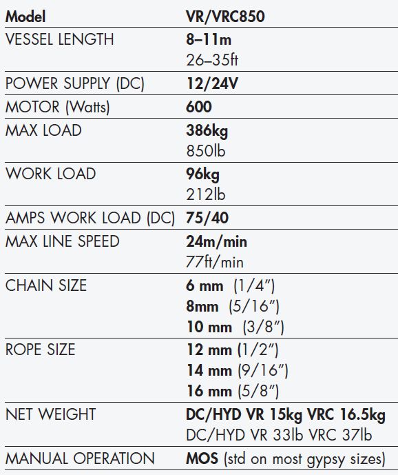 - Independent gypsy and capstan operation (VRC models)
