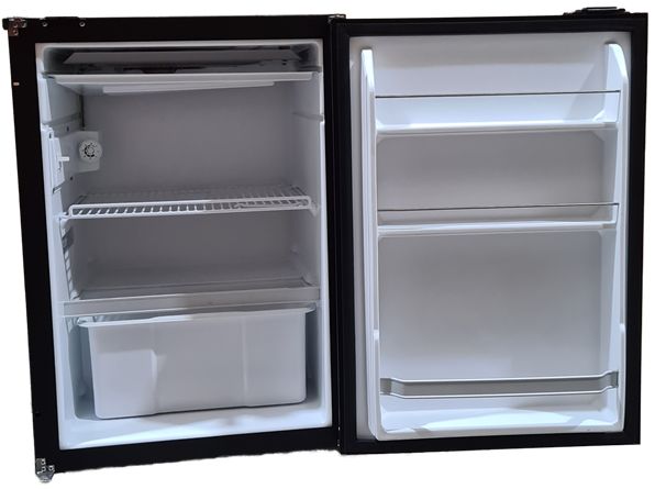 When the compressor is running, the R3802 draws only 2.1 amps @ 12 Volts DC – less than 0.5 amps on the 120VAC option. All Nova Kool Refrigerators and Freezers are equipped with a highly efficient variable speed Danfoss BD series compressor that is designed to run even while you are listed at a 30° angle. Average power use will vary depending on ambient temperature and how often the door is opened etc. but you can expect the R3802 to use less than 20 amp hours per day at 30C ambient temperature.