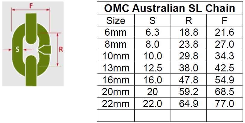 NB: Only Short Link (SL) Chain may be used on anchor windlass chain gypsies. Most Australian windlasses use standard metric chain sizes i.e. 6mm. 8mm, 10mm, 13mm, 16mm and 20mm.