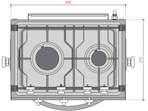 - PMARIA-R: Aluminium non-stick coated plate that sits directly above the burner acting like a small BBQ plate.