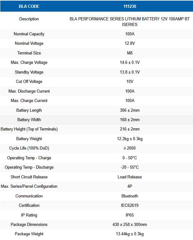 The all new BLA Marine Performance iSeries Lithium is a premium range of batteries consisting of the highest quality Lithium Ion Phosphate (LiFePO4) composition and now with an IP65 rating and improved bluetooth connectivity. BLA Marine Performance iSeries Lithium range comes with all the benefits you expect from using LiFePO4 while being conveniently designed into standard Sealed Lead Acid (SLA) case sizes for easy replacement. With up to 8 times the cycle life of standard SLA technology BLA Marine Performance iSeries Lithium will lower your total cost of ownership and provide you with the latest in battery technology.