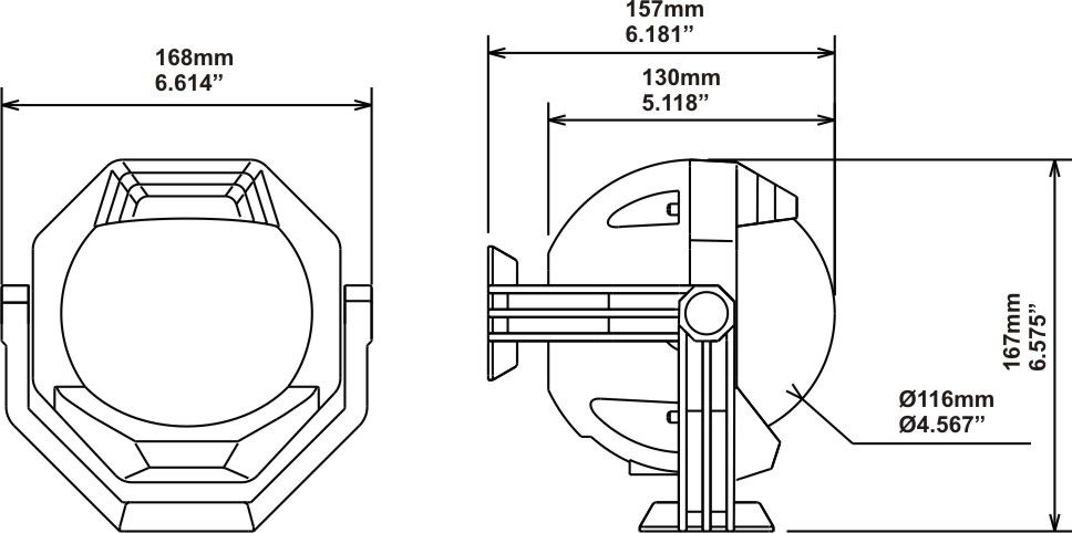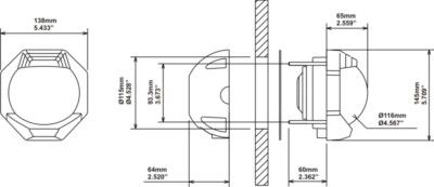 127mm Apparent Dia. - Bulkhead Mount - Incl. Inclinometer and 12V Lighting