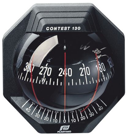 The Plastimo Contest 130 compasses are suitable for sailing boats of 9 metres+ length. The Contest 130 series have a large 127mm diameter card with exceptional magnification giving the user an unparalleled quality of reading by day or night. The contest 130 remains perfectly legible from a distance of 5 metres away. Vertical bulkhead or bracket mounting or can be mast mounted by fitting the optional mast mounting kit.