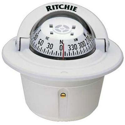 Ritchie Explorer Flush Mount White Compass - 70mm Apparent Dia. Card - 12V Green Lighting (232044)