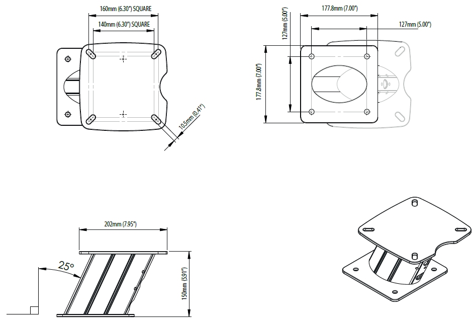 150mm (6”) high and constructed from the best marine-grade aluminium, designed to fit the most up to date radars from Garmin, Lowrance, Raymarine and Simrad.