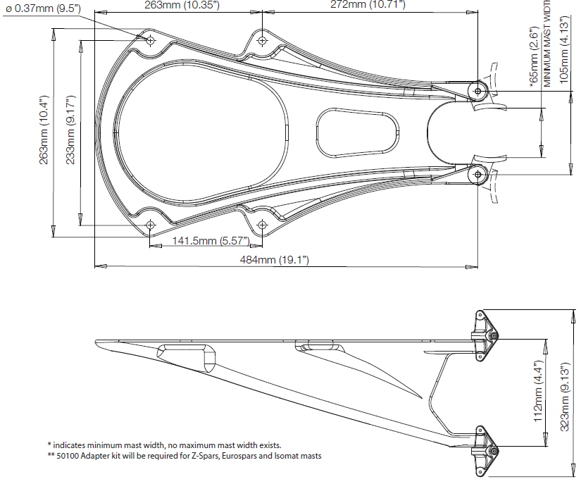- Universal Mounting – Attaches to mast with four swivel feet, matching a variety of mast profiles. Optional adapter kit if required.