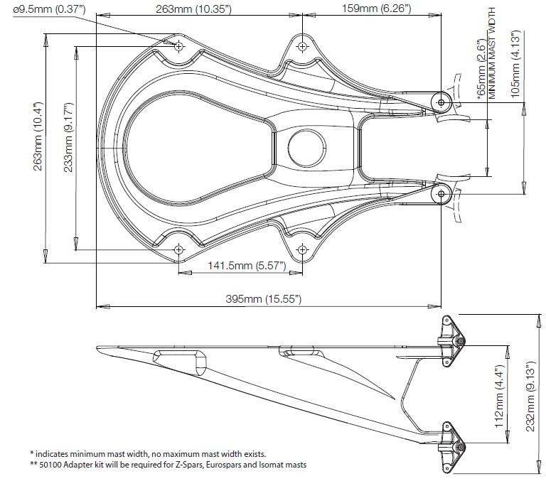 - Universal Mounting – Attaches to mast with four swivel feet, matching a variety of mast profiles. Optional adapter kit if required.