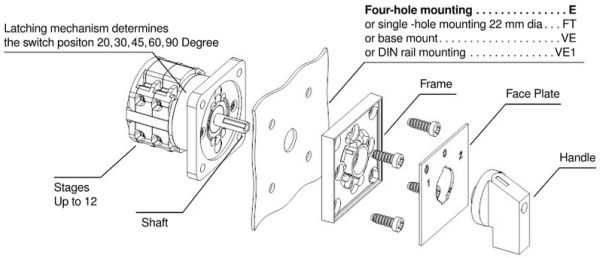 SHORE / OFF / GEN Changeover Switch - Rotary Cam Switch (CA25-A211)
