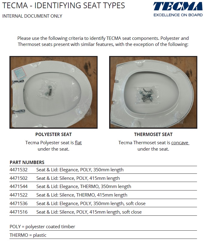 Tecma Replacement Toilet Seat and Lid - Suits Tecma Elegance Toilets - Polyester Coated Timber (4471532)